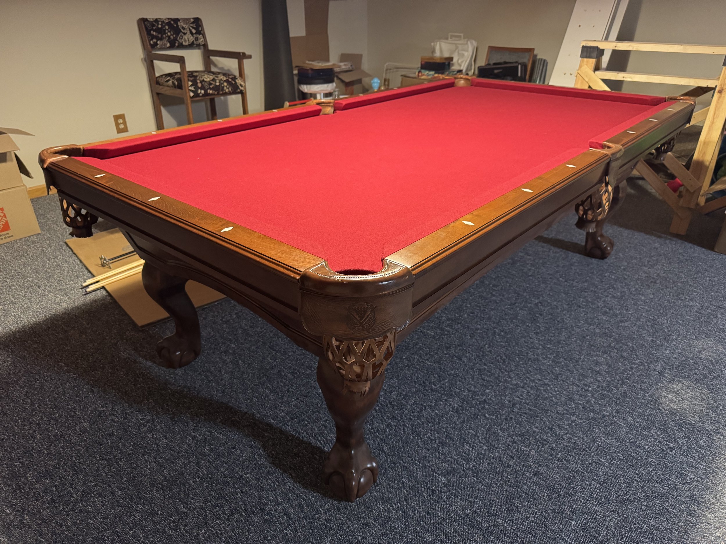 Price on this table includes new cloth (your choice of color), new accessories, new leather pockets, delivery and set up.